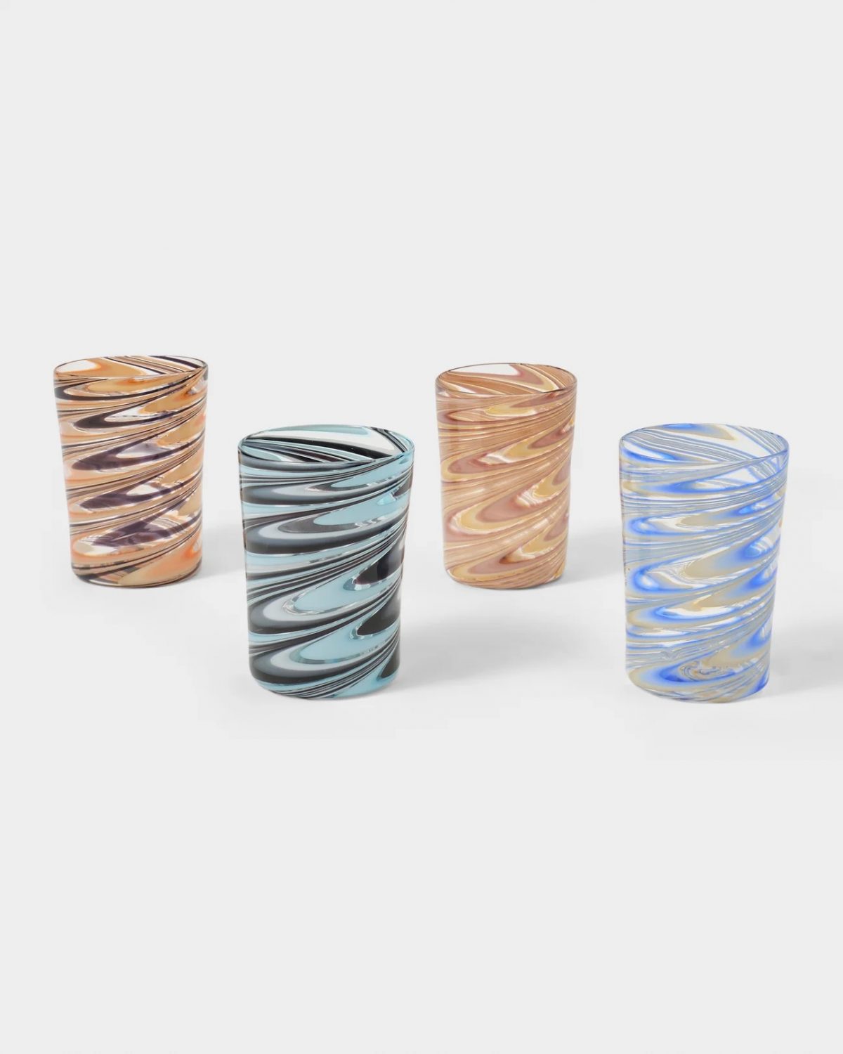 Hand-blown on Murano, the historic Venetian glassmaking island, they are produced as a collaboration between Cabana and Laguna~B, these tumbler glasses feature an extraordinary marbled pattern and come in a choice of 5 different colours. They represent an exciting marriage of traditional artisanship with contemporary innovation and will add an immediate splash of freshness to your table or sideboard.