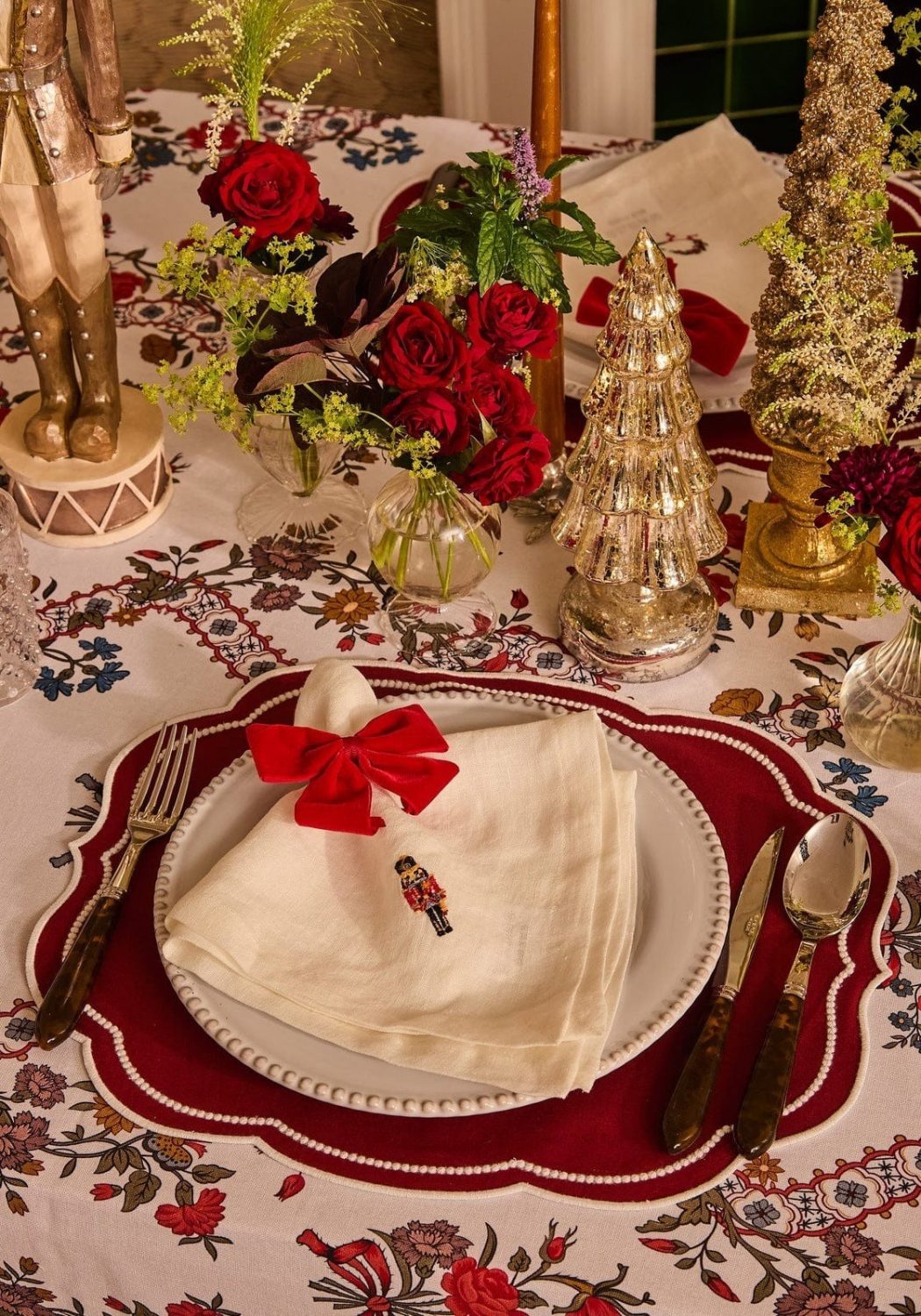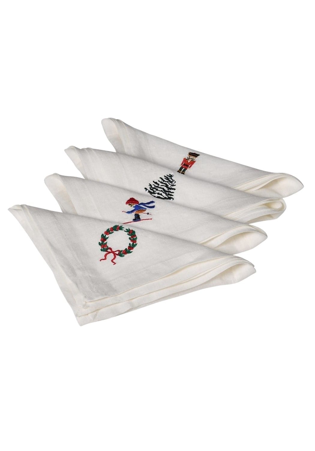 Bring a dash of festive charm to the table with this set of four linen napkins, each adorned with classic Christmas motifs in rich, seasonal hues. Soft to the touch and full of character, they strike the perfect balance between playful detail and timeless elegance — equally suited to cosy brunches and candlelit dinners.